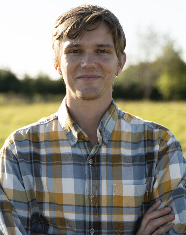 Image of a white man with a beard (Ryan Clancy) standing in a green park with trees in front of a brown Milwaukee County Parks sign on a sunny day.